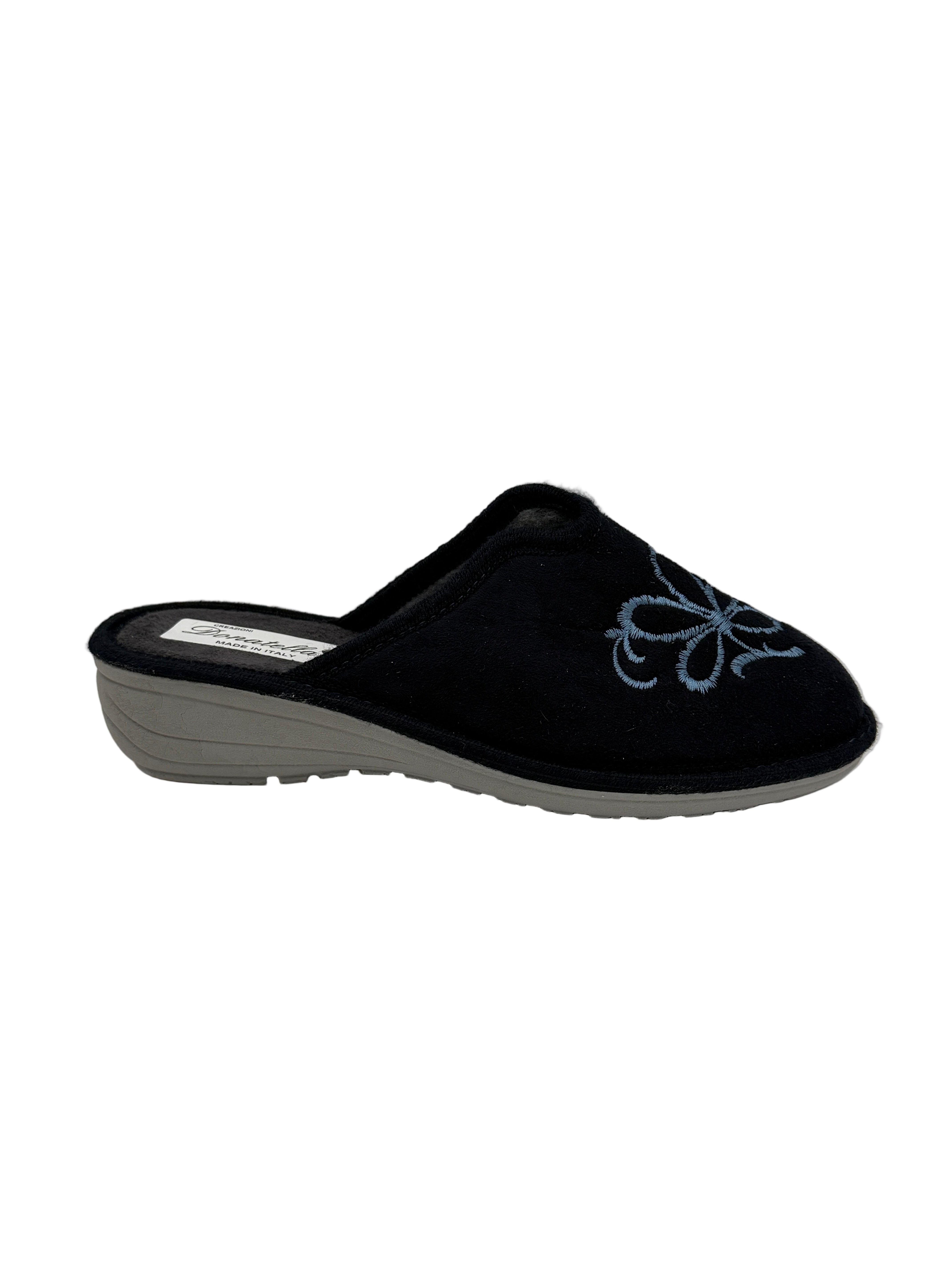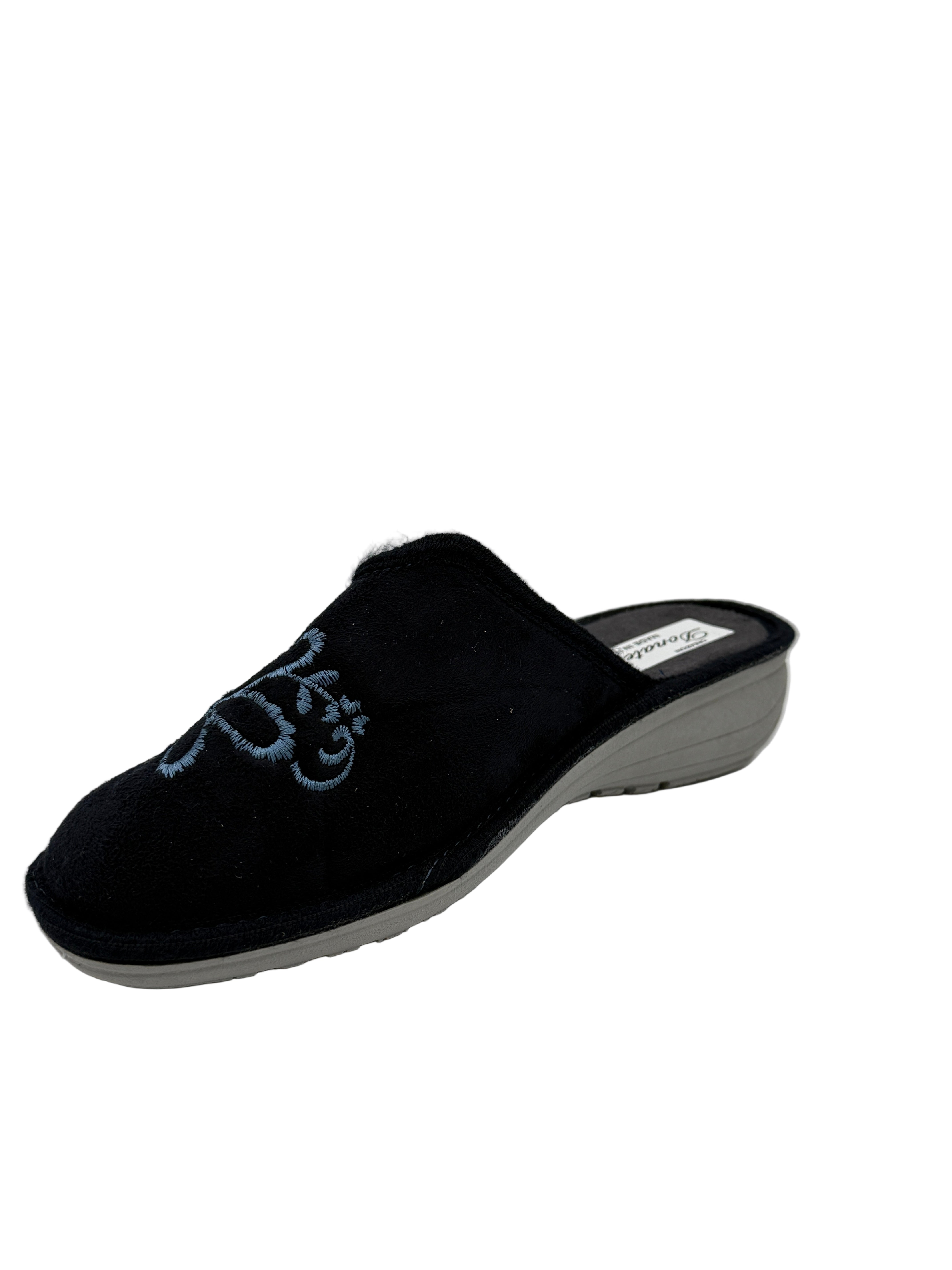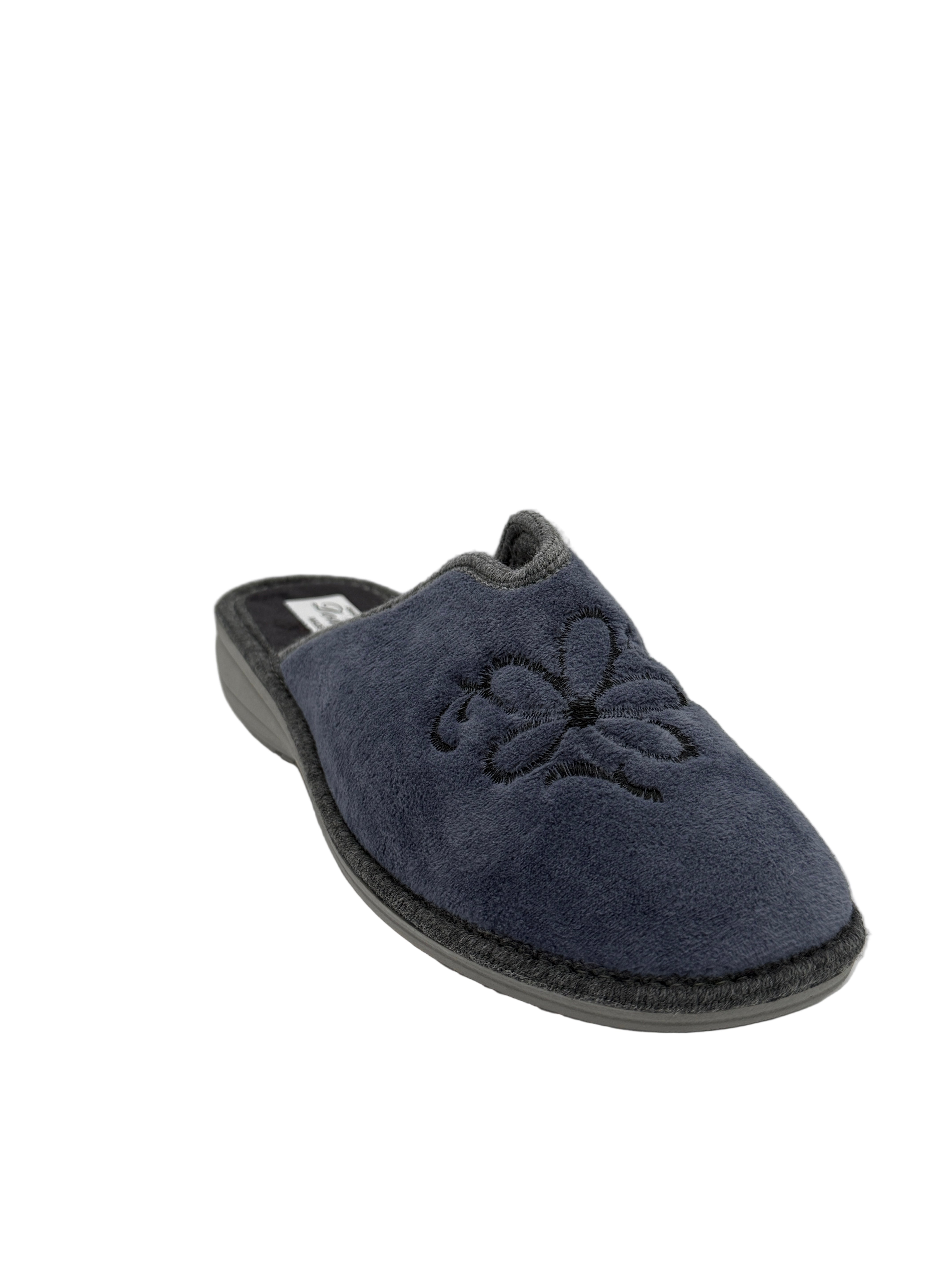 Cecilia_pantofola blu con ricamo fiore