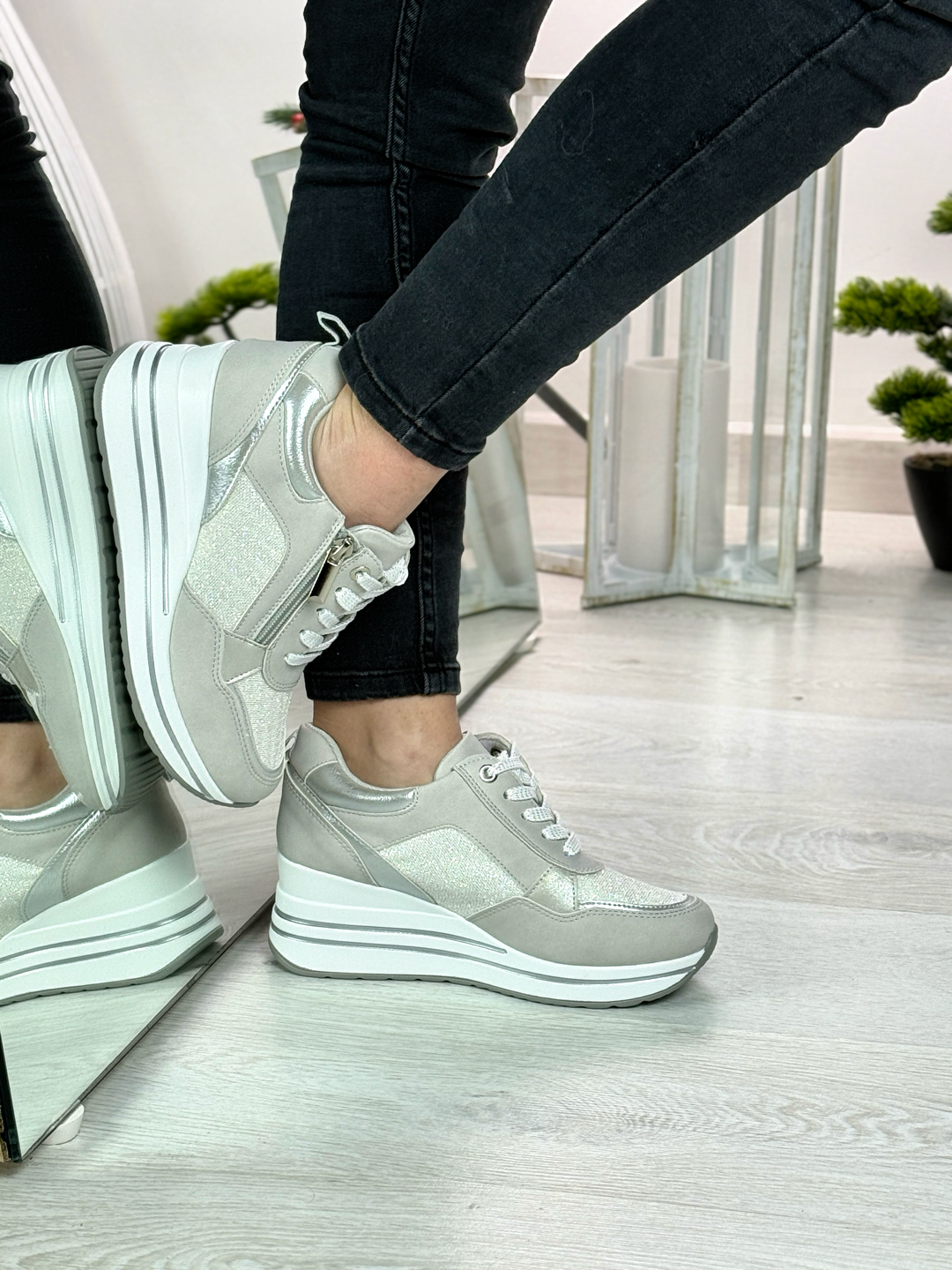 Tessa_sneakers comoda grigia con zeppa