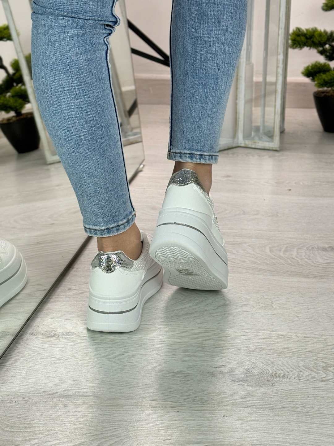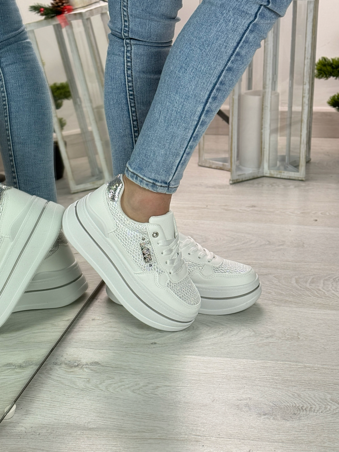 Irina_sneakers bianche e argento con gioielli