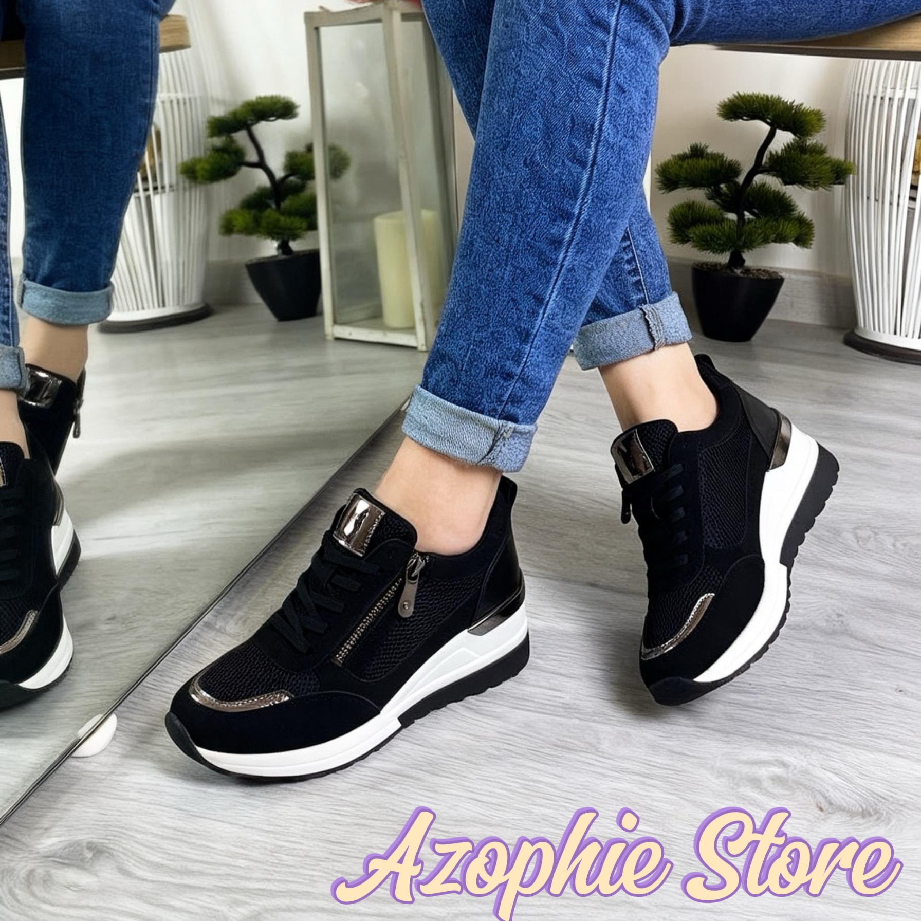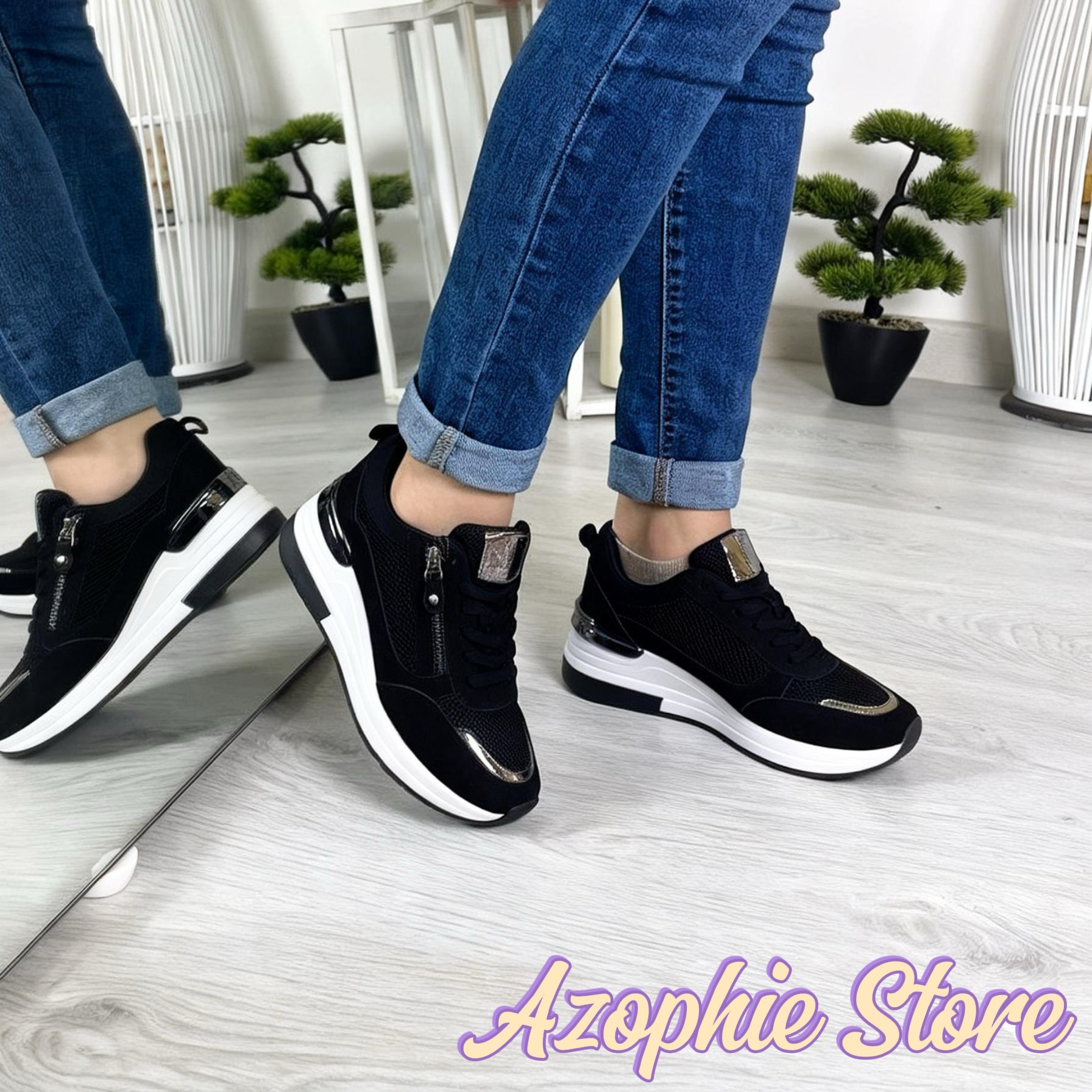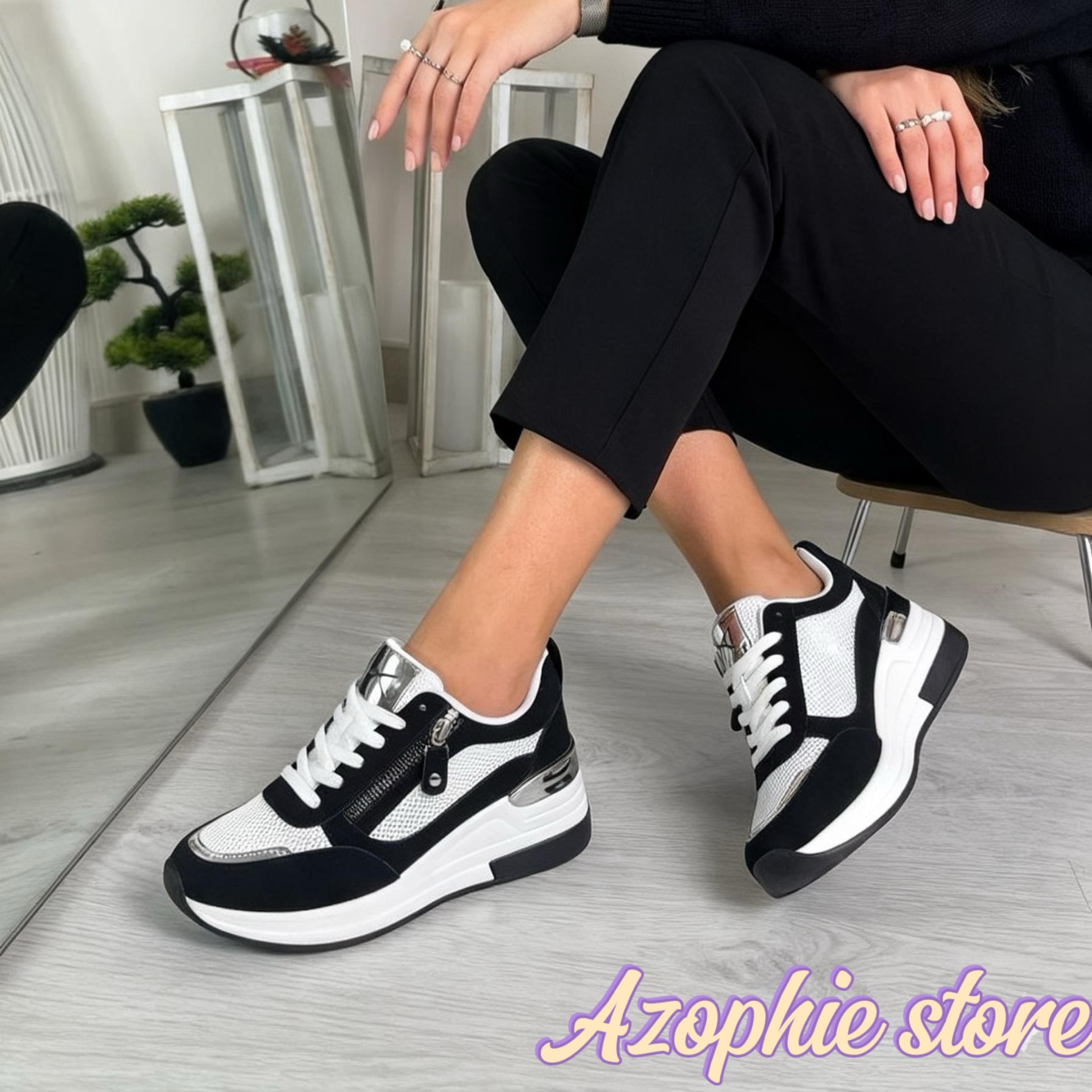 Axa_sneakers nera e bianca con zeppa